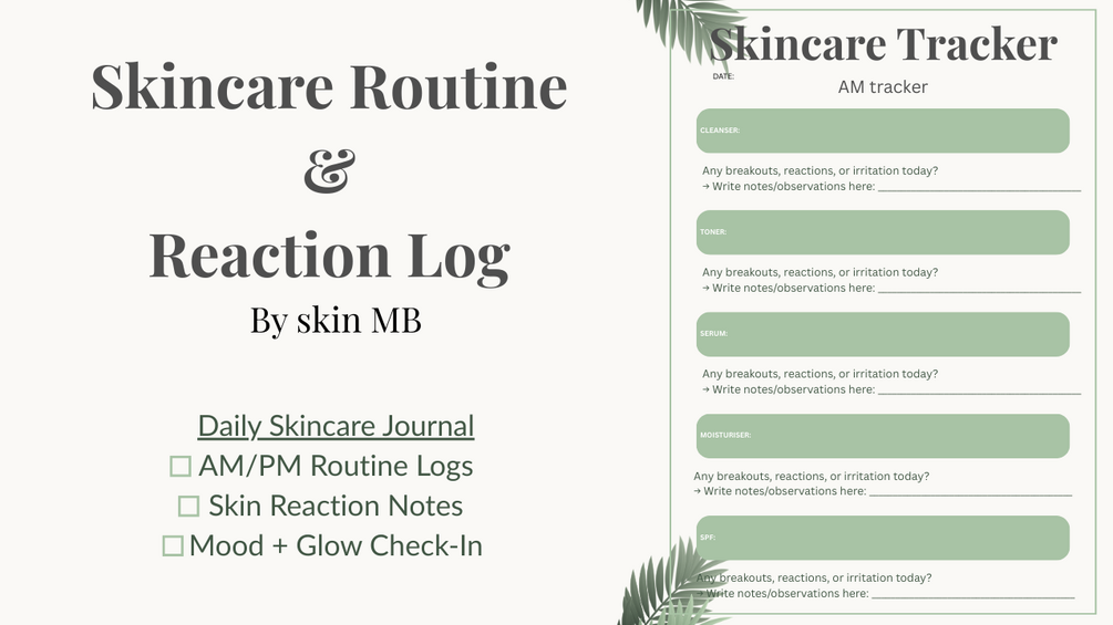The Glow Tracker by Skin MB is a minimalist, easy-to-use skincare journal designed to help you: